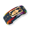 This 1/1 Artist Edition bracelet features a Jack Crevalle bronze badge on blue leather strap mounted on a Guatemalan textile wrapped leather base. The blue leather strap is accented with pyrite beads + hand-stitched gold-filled wire. Adjustable sizing for the perfect fit.