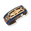 Bronze Trout badge mounted on 1” leather + denim wrapped bracelet with gold-filled wire and real turquoise beads. Fastened with ‘just right’ adjustable sizing closure to size down to 6" or up to 8" wrist.