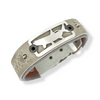 This Artist Edition bracelet features a silver Tarpon badge mounted on stone leather and waxed canvas wrapped leather base. Our stone leather strap features 2 Navajo pearl style silver beads + hand-stitched silver wire on both sides. Adjustable sizing for the perfect fit.