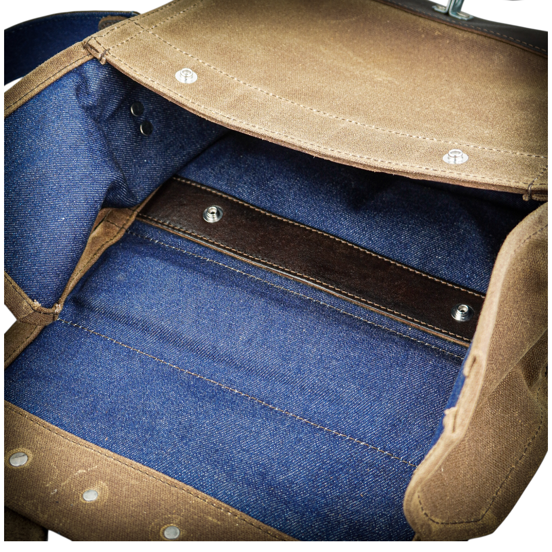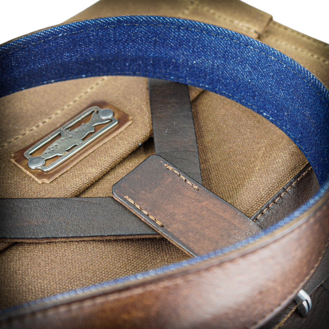 The Scout brings together all the materials we love most: rugged waxed canvas, blue denim, premium full-grain leather, and our signature Trout Stargazer white bronze badge. Designed for everyday carry, and built to handle the demands of the trail, the water, and the city.