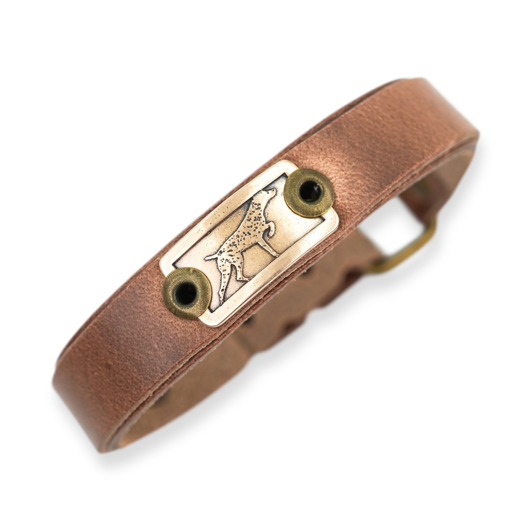 Outdoor bracelet with hammered skinny bronze badge mounted on .60” leather bracelet. Fastened with ‘just right’ adjustable sizing closure to size down to 6" or up to 8" wrist. Extenders available for larger wrist sizes.