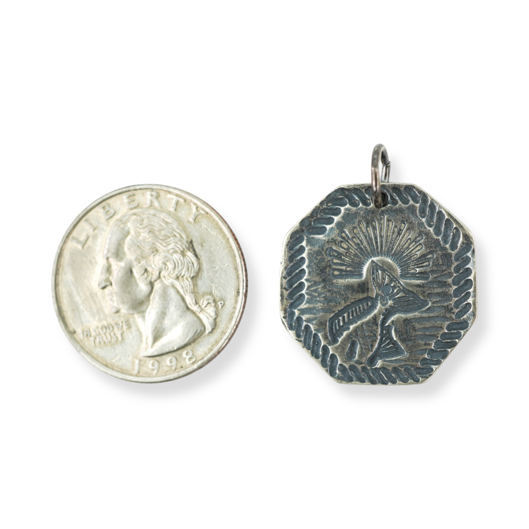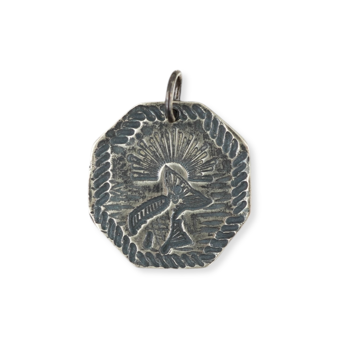 Sterling silver pendant is 1" circumference. Reproduction piece made from hand forged design.