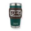 Stainless steel shed badge riveted to 3" tall premium leather cuff designed for 20oz Yeti Tumbler. Leather cuff slides up the bottom of the Yeti for snug fit, and easy removal for washing your Yeti.